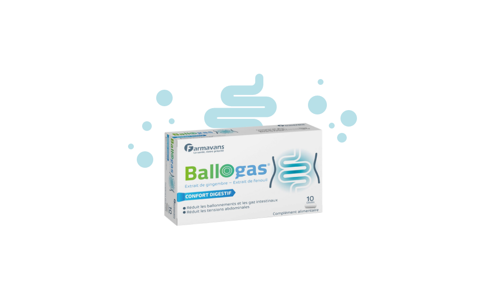 BALLOGAS est un complément alimentaire à base d’extraits naturels de gingembre et de fenouil, deux plantes traditionnellement utilisées pour leurs effets bénéfiques sur le système digestif.