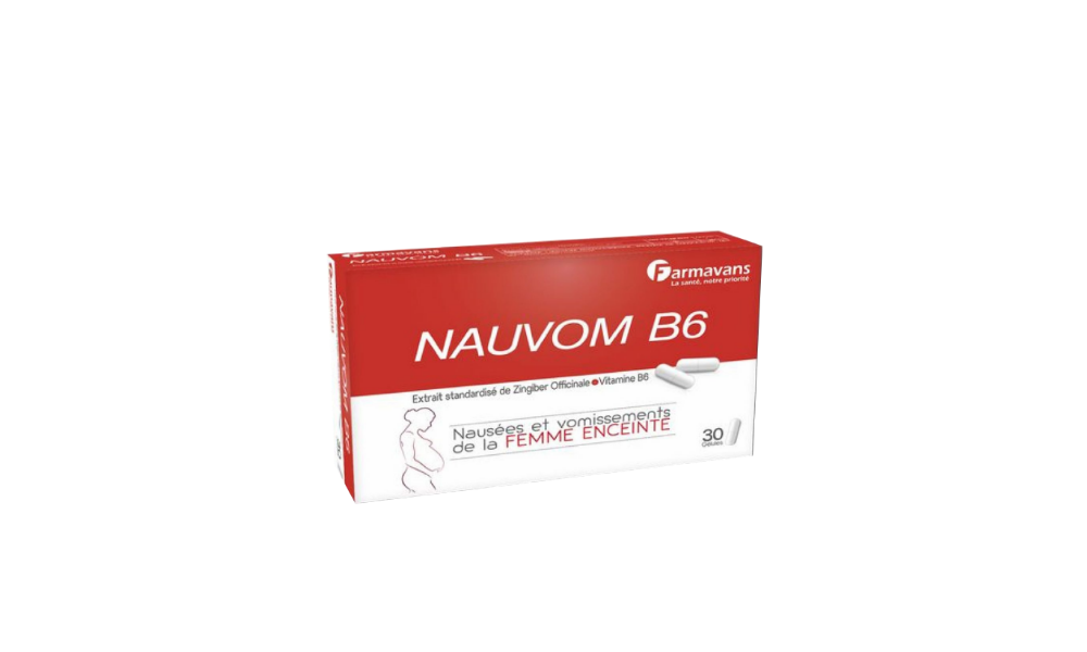 NAUVOM B6 est un complément alimentaire spécialement formulé pour soulager les nausées de grossesse, grâce à l’action combinée du gingembre et de la vitamine B6. Deux actifs reconnus pour leur efficacité, sans effets secondaires majeurs, pour un accompagnement tout en douceur dès les premiers mois.