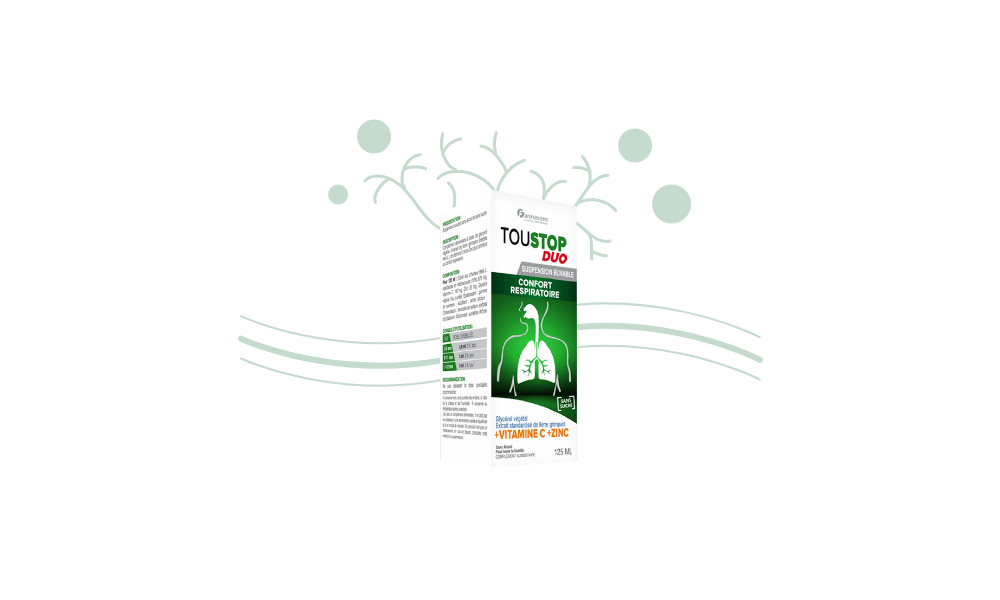 TOUSTOP DUO est une suspension orale formulée pour soutenir le confort respiratoire, notamment en période de toux, de rhume ou de voies respiratoires encombrées.