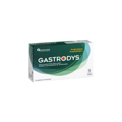 GASTRODYS est un complément alimentaire à base de Saccharomyces Boulardii et d’extrait de gingembre, conçu pour sou...